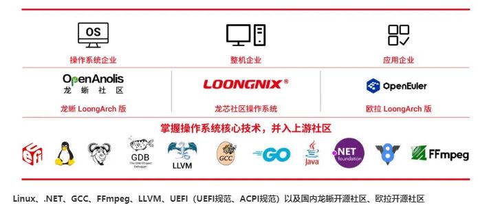 2022年上半年,LoongArch架构先后获得GCC、.NET等国际主流开源组织的正式支持,加上此次Linux内核社区,作为全新的独立CPU架构,LoongArch架构已被多个顶级开源社区所认可和接受,正在逐步成长为与X86/ARM并列的体系结构。