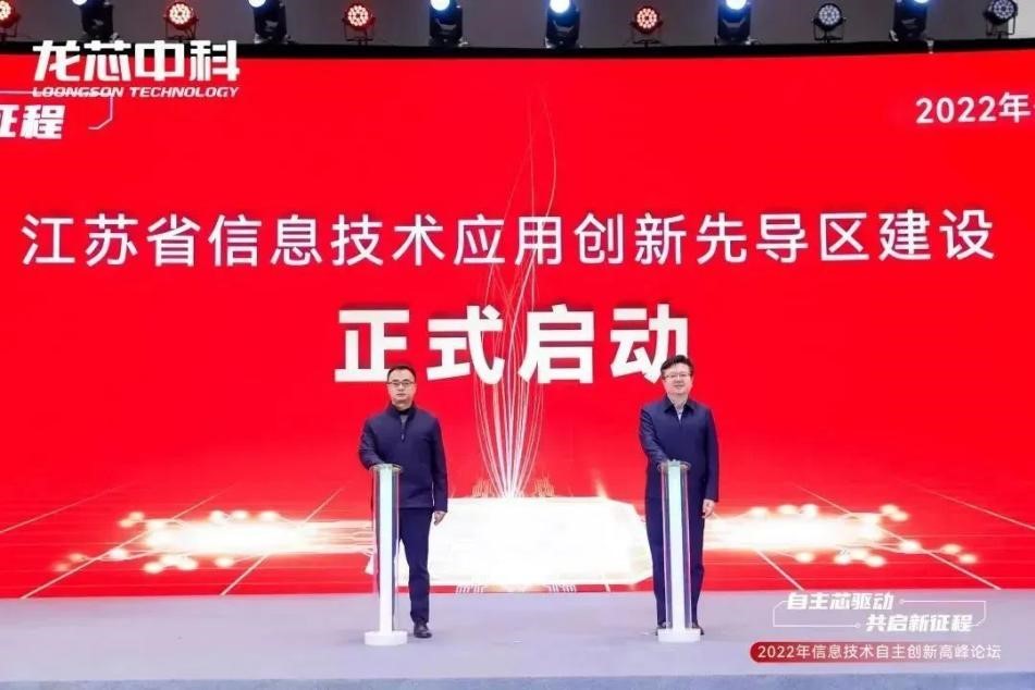 江苏信创先导区建设启动会上举办了江苏省信息技术应用创新先导区建设启动仪式,江苏省工业和信息化厅软件与信息服务业处二级调研员康成刚,南京江北新区研创园党工委书记、管办主任蒋华荣共同启动先导区建设项目。